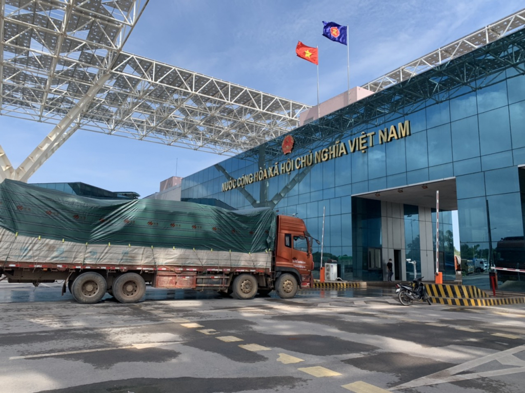 Thông quan trở lại vào ngày 26/4, hàng chục tấn hàng hóa lưu thông, nhập khẩu từ Trung Quốc về Việt Nam qua Cửa khẩu cầu Bắc Luân II (TP Móng Cái). Ảnh: Hữu Việt